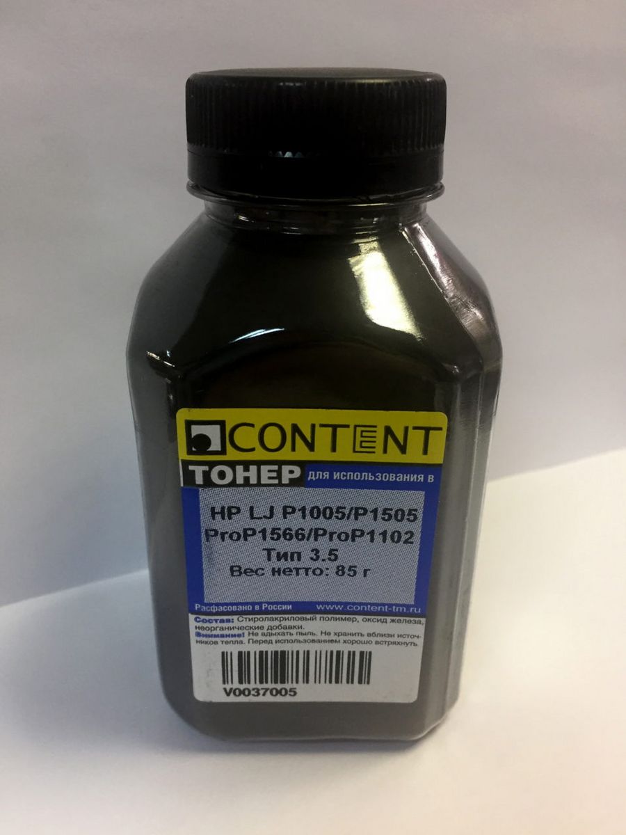 Тонер Content для HP LJ P1005/P1505/ProP1566/ProP1102, Тип 3.6, Bk, 85 г, банка