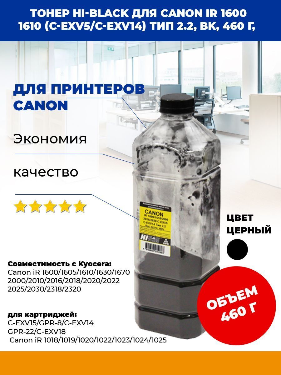 Тонер Hi-Black для Canon iR 1600/1610/2000/2016 (C-EXV5/C-EXV14) Тип 2.2, Bk, 460 г, канис